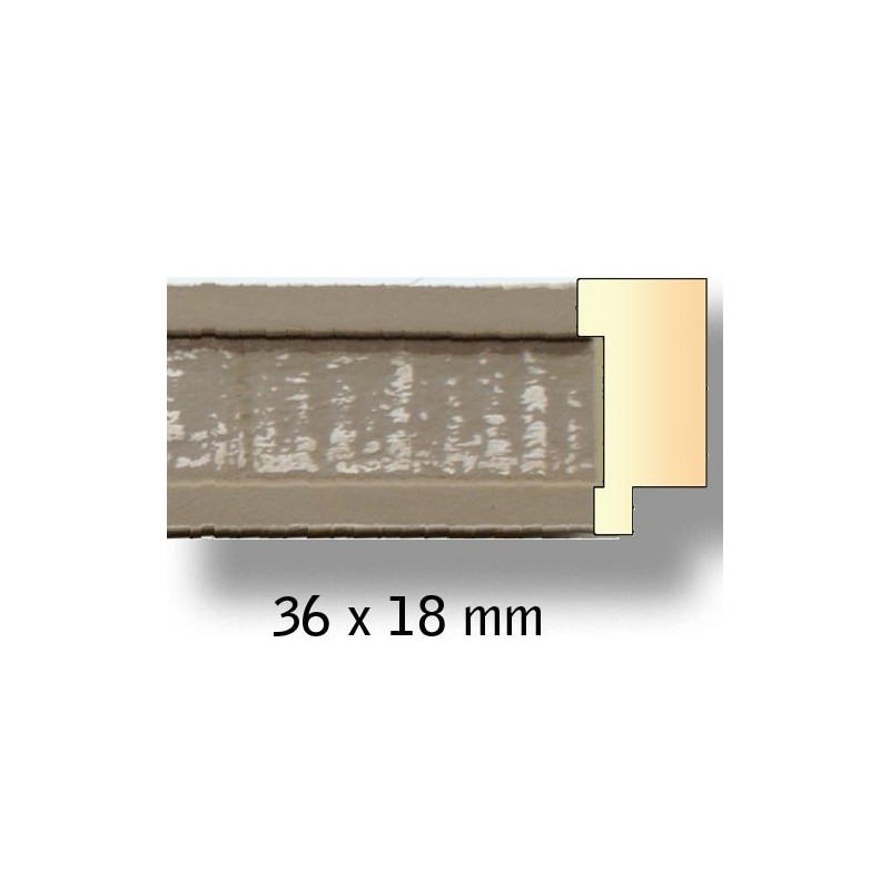 Baguette en bois, Plat cérusé vielli style art brut, section 36x18 mm; longueur 3,00m Beige