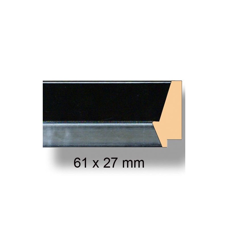 Baguette en bois, Pente inversé noire et argent;61x27x3000mm