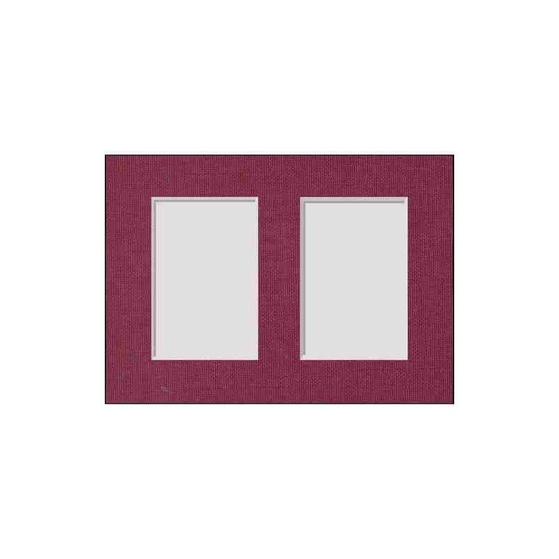 passe partout de contre-collé 15/10e mm tissus- ame blanche sans acide couleur bordeau avec 2 ouvertures biseautée rectangulaire