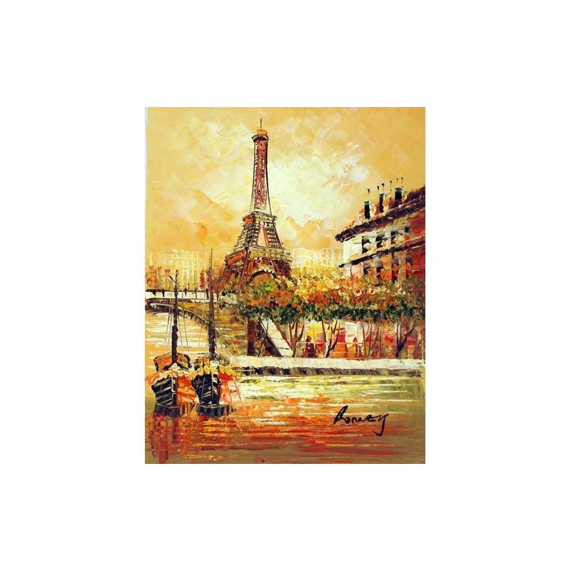 Tableau décoratif peint à la main sur toile 20x25cm, thème Paris "Sur les Quais de Paris" signé Burnett
