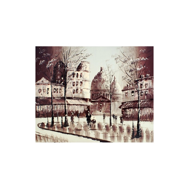 Tableau décoratif peint à la main sur toile 20x25cm, thème Paris "Dans les rues de Paris en Noir et Blanc" signé Burnett