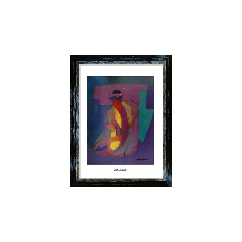 Tableau Cubisme de P.Picasso "Le Pigeon au Petit Poid" Reproduction sur papier glacée, cadre verre et dos, baguette laqué, couleur orange et or