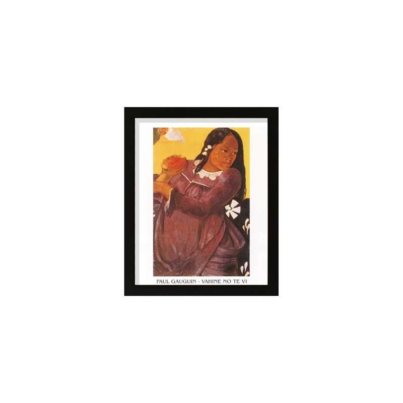 Tableau style Art Moderne de P.Gauguin "Vahine No Te Vi". Reproduction sur papier glacée, cadre verre et dos, baguette plate, couleur noir, mat